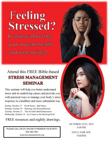 If you feel like your life is out of control, you are experiencing symptoms of burnout, or are feeling depressed, you will benefit from this FREE 3-day Stress Management Seminar.